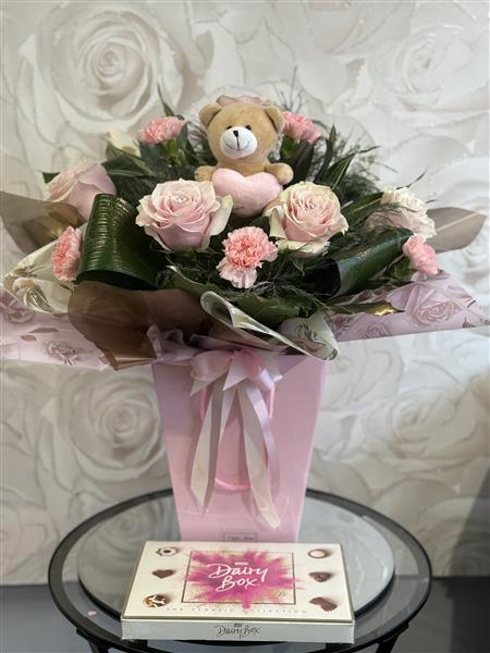 Please note that due to the seasonal availability of flowers it may be necessary to vary individual stems from those shown. Our skilled florists may substitute flowers for one similar in style, quality and value. Where our designs include a sundry item like a vase or basket it may not always be possible to include the exact item as displayed. If such an occasion arises we will make every effort to replace the item with a suitable alternative.