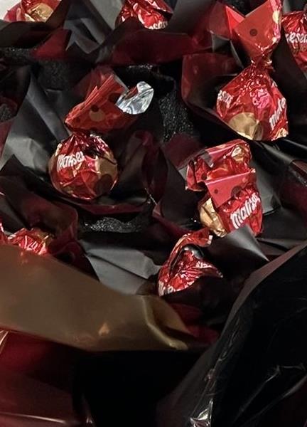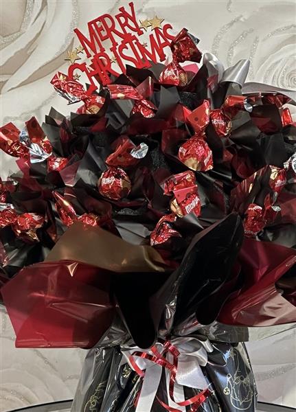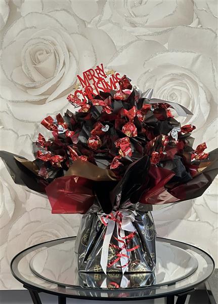 Our Merry Maltesers bouquet is a fun and delicious gift that is guaranteed to bring smiles this Christmas. Packed full of crispy, chocolatey Maltesers, this arrangement is finished with stylish black and red Christmas wrapping and topped with a festive 'Merry Christmas' sign.